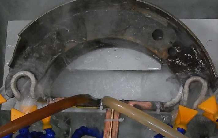 剎車蹄是指受剎車凸輪或推桿的作用量而被推向外展開壓制剎車鼓起制動作用的配件,其形狀如半月形。剎車蹄半月形位置需要高頻淬火,其增加耐磨度和使用壽命,優(yōu)質(zhì)的淬火工藝能使剎車制動效果更好,我公司先進(jìn)的技術(shù)工藝和操作臺控制能一次性同時淬火四個月牙卡槽,效率高、節(jié)約人工成本!
